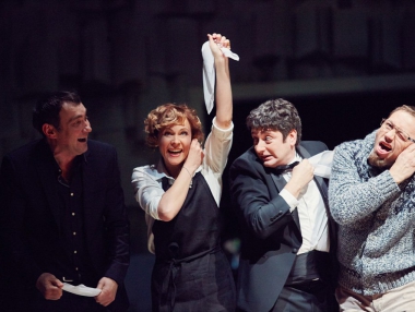 А мы назвали спектакль «Имя». Да, в нем есть спор об имени — это факт. Спор остроумный, бурный, переходящий на личности. Всё, как у всех: спектакль же о нас — о людях. И вы же знаете театр, и понимаете, что за этим спором стоит что-то ещё. Конечно! Это — ТАЙНА. И она по всем законам сцены и жизни обязательно будет раскрыта.