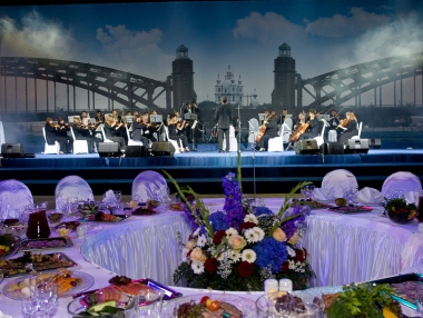 65-летний юбилей компании Мостострой — это крупнейшее мероприятие, которое состоялось в «Ленэкспо» для сотрудников и почетных гостей Компании. С перых минут Welcome гости могли насладиться стильной выдержанностью статусного торжества. Во время Welcome, перед декорированным фасадом павильона №6 всех приглашенных встречал оркестр с белоснежной форме.